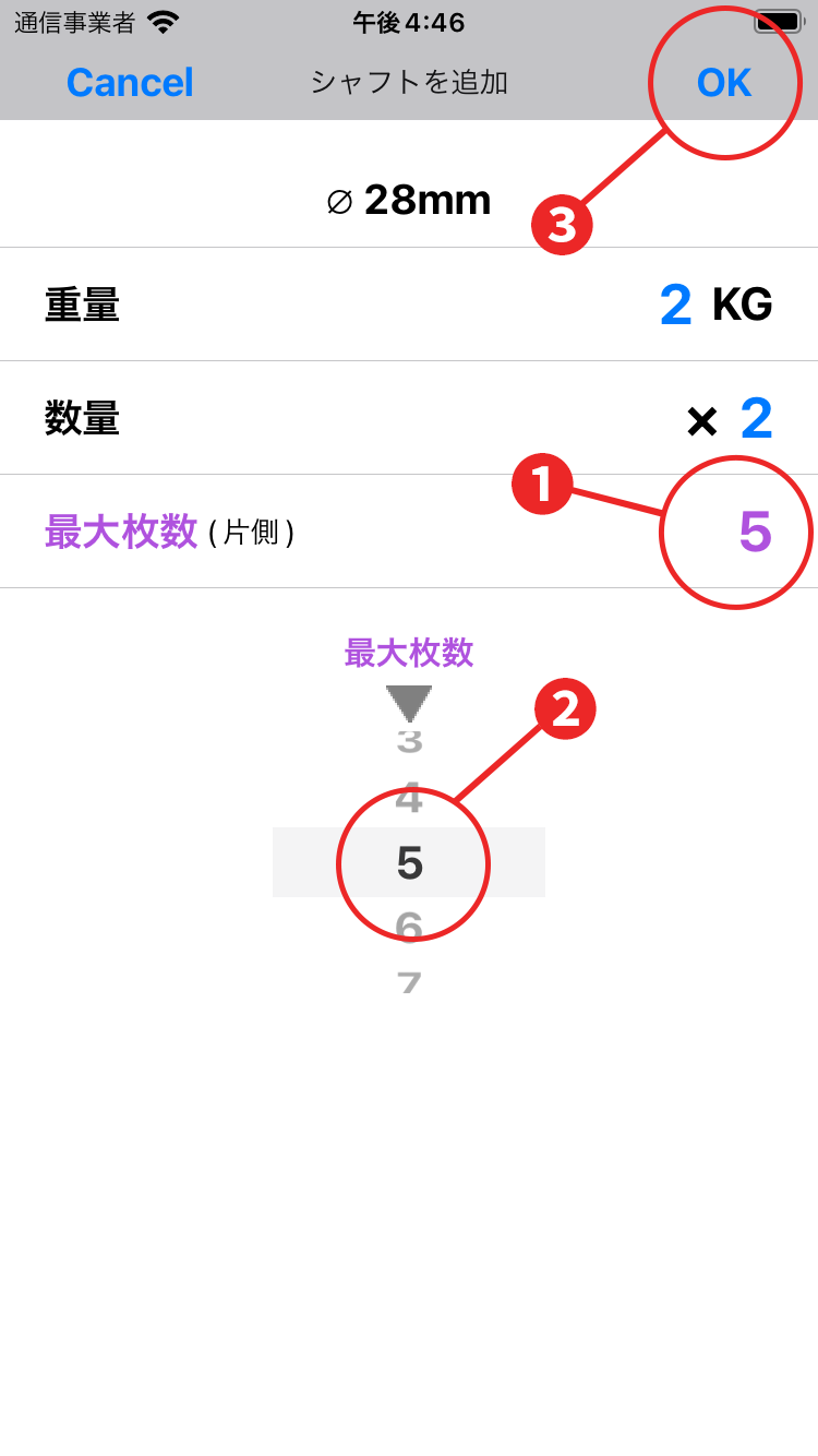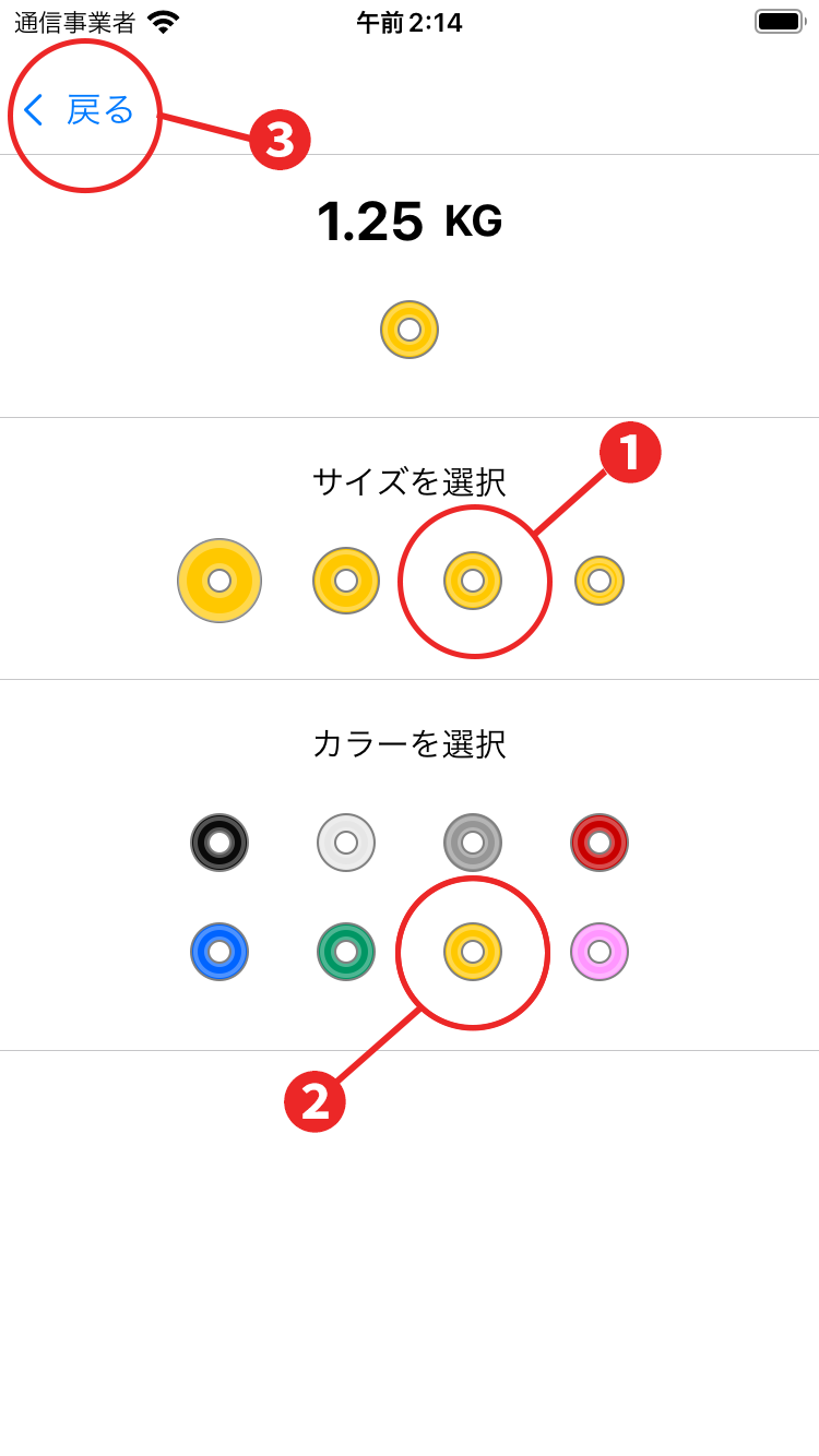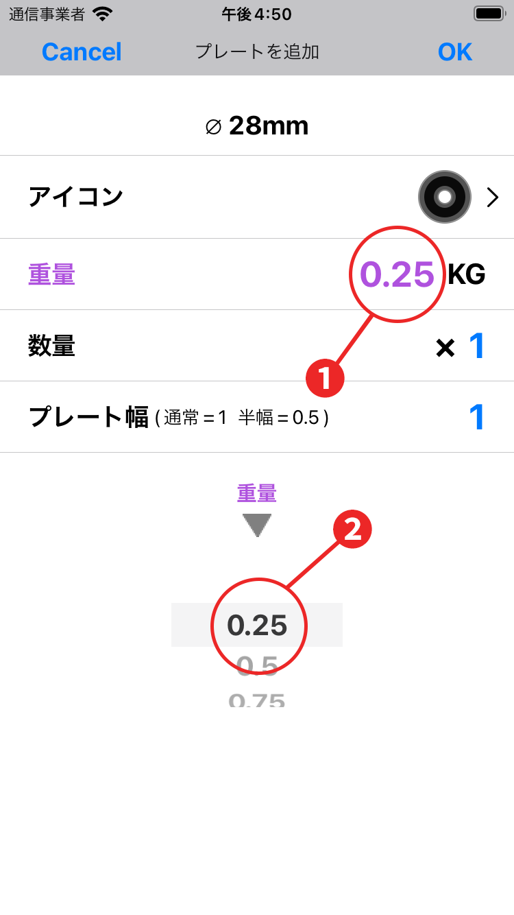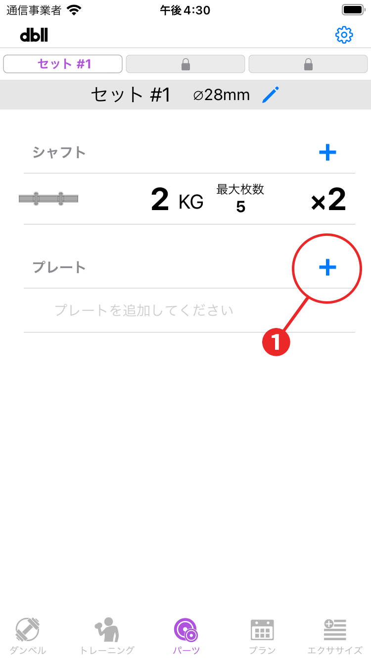 次にプレートの登録です。プレートは重量の種類の数だけ登録します。