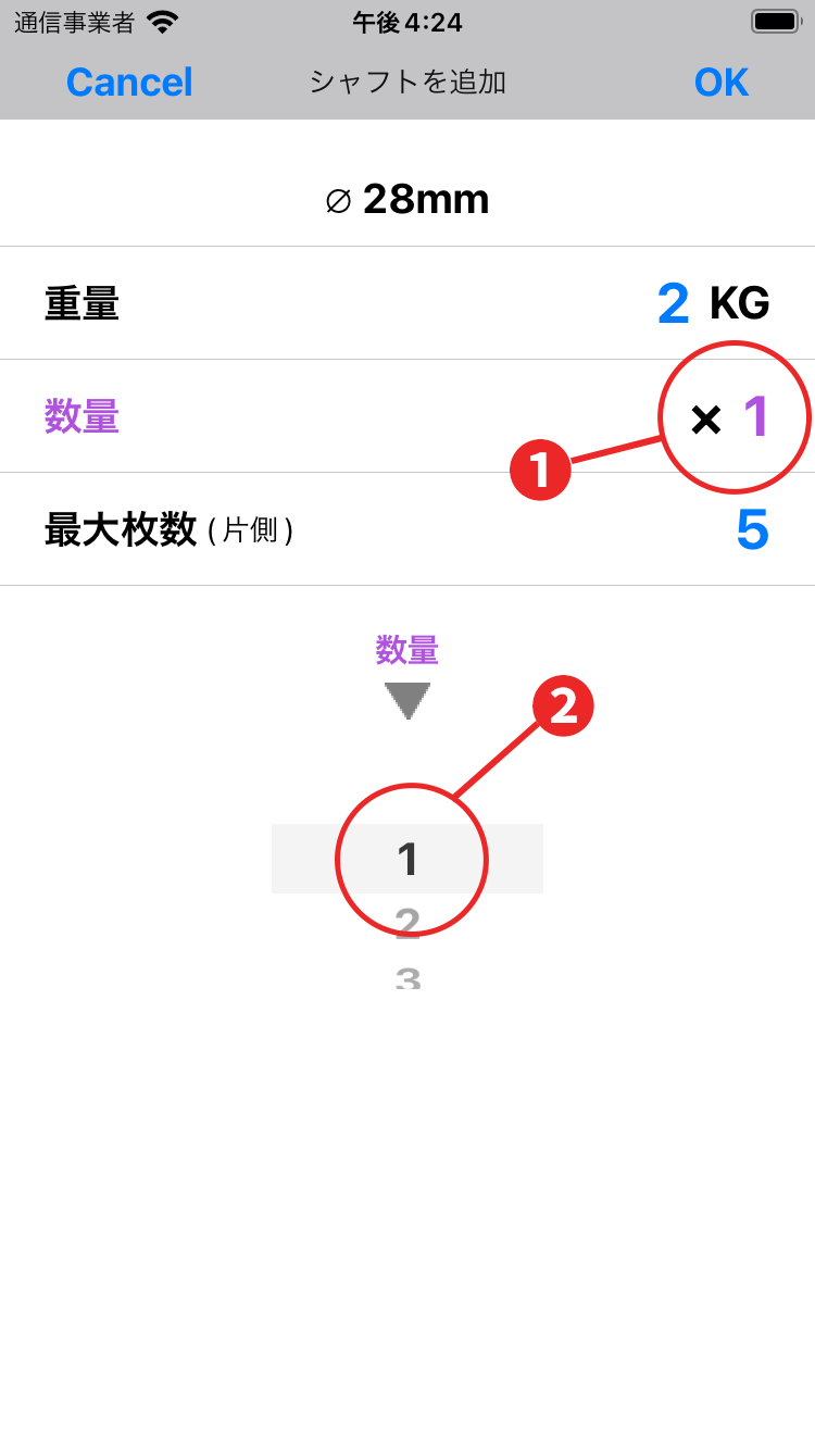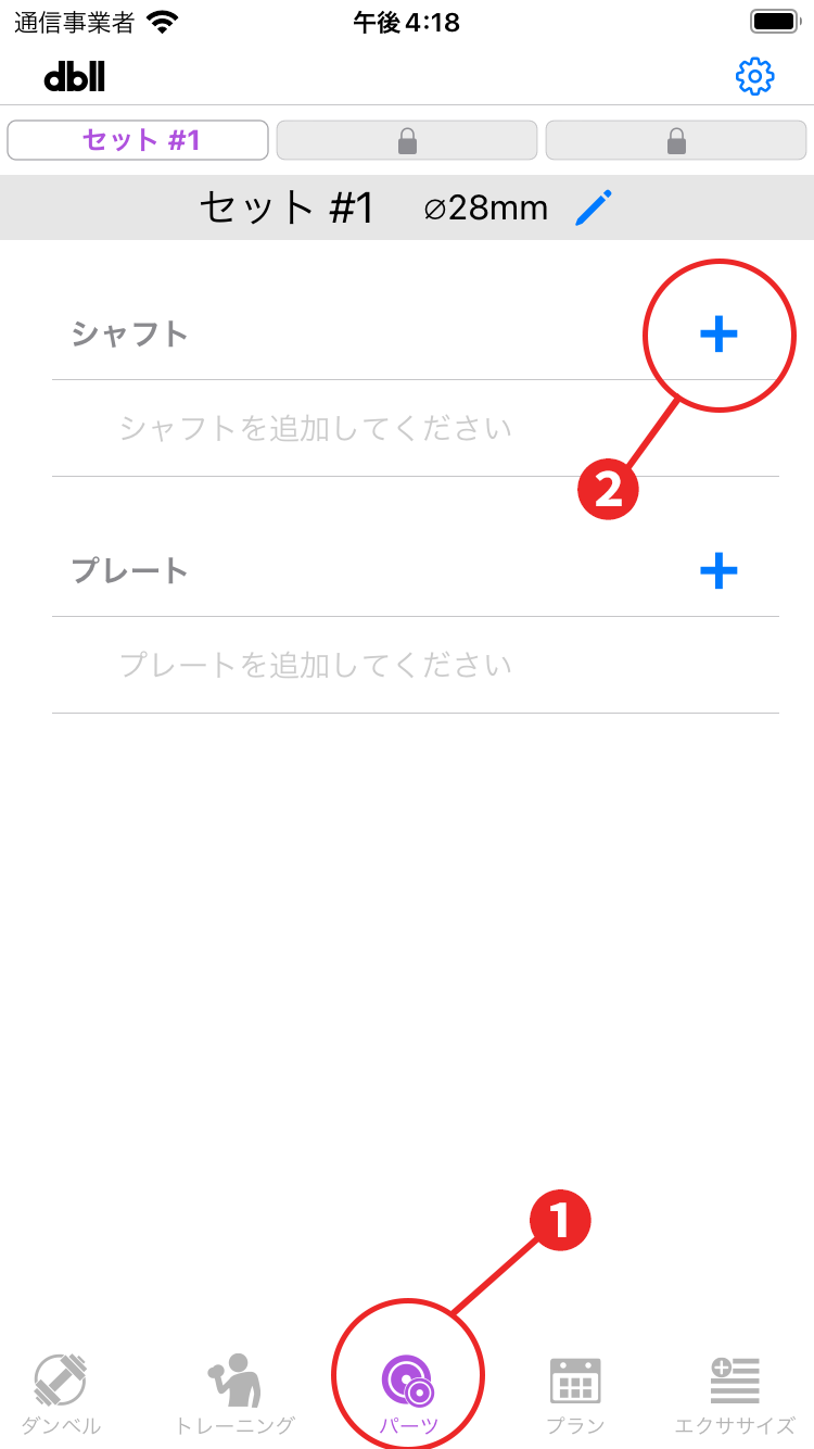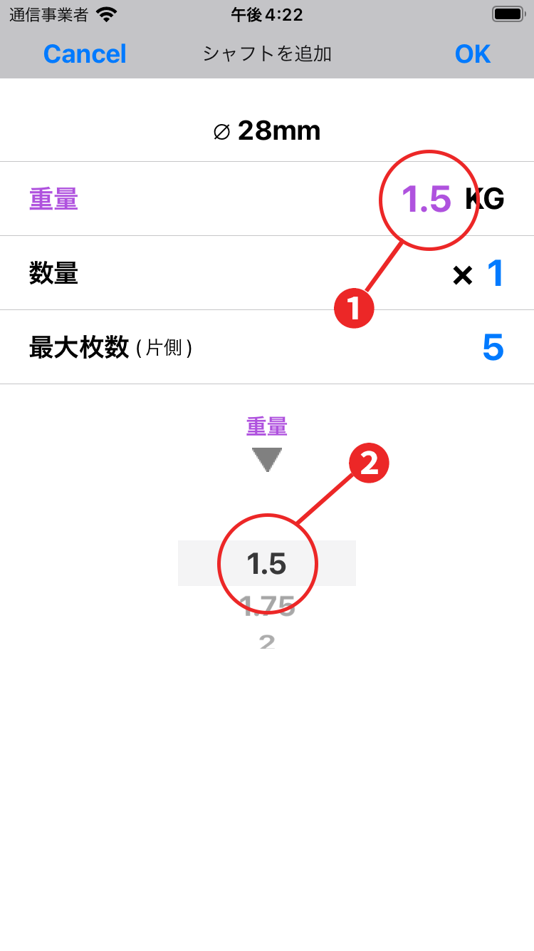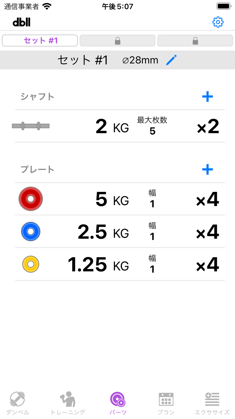 次にプレートの登録です。プレートは重量の種類の数だけ登録します。