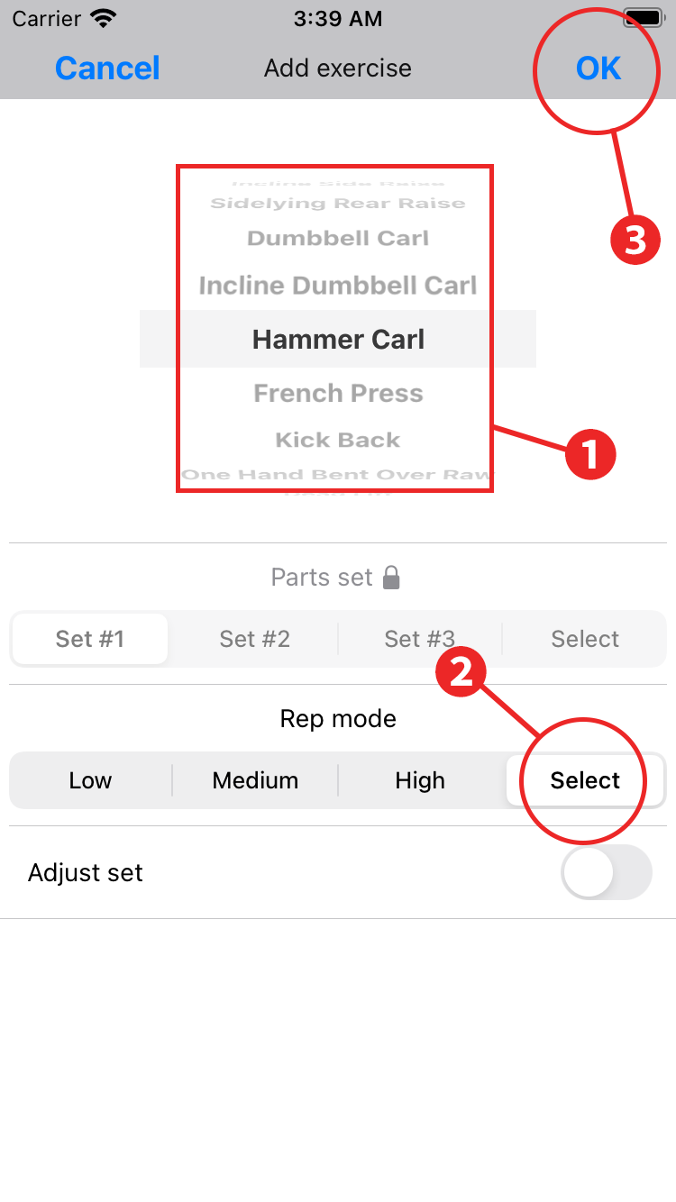 - Tap "OK" to complete adding the first exercise of Day 1.